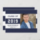 Traditional varsity lettering on striped background with single photo. Background can be changed to match your school colours. Easy and affordable do-it-yourself template. Add your own photos and custom text, or choose "Customise It" to change the layout, size, style or photo options. Optional stripes backer can be altered if you wish to add more photos, thank you message, or graduation party information.