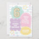 pastel varsity preppy patch notebook birthday invitation with hearts, daisies, disco ball and chequered background.