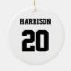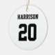 Varsity sports black white custom name number monogram Christmas Ceramic Ornament.