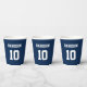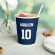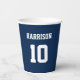 Football dark navy blue and white custom name number birthday Paper Cups.