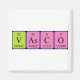 Vasco spelled out as V As C O (Vanadium Arsenic Carbon Oxygen) on a magnet for the scientist in you.