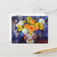 A postcard with the fine art painting by the Belgian artist Théo van Rysselberghe (1862-1926), Vase of Flowers (1907). A richly coloured floral still life of a dahlia bouquet in orange, yellow, and blue in a ceramic vase.