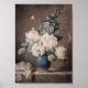 Vase of Flowers and Grapes on a Stone Ledge Poster