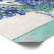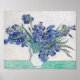 A fine art poster featuring the post-impressionist masterpiece Vase with Irises (1890) by Dutch artist Vincent van Gogh (1853-1890), showcasing a serene still life of vibrant irises arranged in a white pitcher set against a simple white background.
