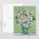 A fine art postcard with the post-impressionist oil painting by Vincent van Gogh, Roses (1890). A green ceramic vase with a bouquet of roses against a green background. He painted many versions of rose bouquets. This painting has faded and was originally pink roses against a yellow-green background.