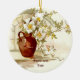 Vintage vase with white roses watercolor ornament, featuring a beautiful vase with white roses watercolor. One rose branch extends outward. It is a template and you can change text or delete it if desired.