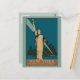 Post card from our poster, a modern vectorised remake of a vintage art deco travel ad poster of New York, the Hudson bay and The Statue of Liberty in our traditional neo art deco pastel colours.