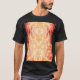 I give wanted to give this a 4 instead of a 5 because these Basic DARK T0shirts run unexpectedly SLIM or Narrow. Which is great if you do not have a potbelly, but I have a paunch. It isn't the shirt's fault that I've got a beer belly. The design and shirt itself is a quality cotton shirt. The color is more of a deep purple, but still a very pretty color. The Basic DARK T-shirts run a bit SLIMMER than the Basic Ts. The neck is a fraction narrower (or seems to be narrower) also. I'm a paunchy middle-aged woman and my neck is 12 inches (31cm) thick and the neckline fell about the same as in the photo of the man, and I had the desire to tug it a bit. So if you're a thick necked man or like loose shirts, be aware these are slimmer shirts. Once I get rid of my lockdown paunch it'll look great. The shirt washed well in cold water with no apparent bleeding. We don't have a dryer, so it hung dry. Did not shrink. Love the colors and the design. The design looks smaller on my shirt than it does on the model on-line. But still, it looks good on the shirt. The printing looks as it does on the model, just the size seems fractionally smaller. Washed garment in cold water, hung dry and design appeared unaffected.