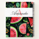 Vector Green & Black Watermelon Pattern Monogram Notebook