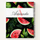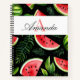 Vector Green & Black Watermelon Pattern Monogramed Notebook