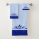 Chic Vector Ornament & Royal Blue Stripes on Light Blue. Elegant modern towl set.