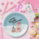 Vegan Christmas with cartoon piglet and presents Paper Plate