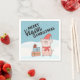 These Vegan Christmas paper napkins feature a nice cartoon piglet with a red hat and scarf and some colourful presents, on a snowy background.