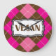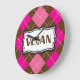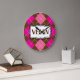 Vegan wall clock with pink argyle pattern design. Vegan home decor and gifts.