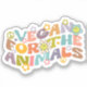 This cute "Vegan for the Animals" sticker features a quote with retro flowers.