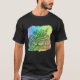 I give wanted to give this a 4 instead of a 5 because these Basic DARK T0shirts run unexpectedly SLIM or Narrow. Which is great if you do not have a potbelly, but I have a paunch. It isn't the shirt's fault that I've got a beer belly. The design and shirt itself is a quality cotton shirt. The color is more of a deep purple, but still a very pretty color. The Basic DARK T-shirts run a bit SLIMMER than the Basic Ts. The neck is a fraction narrower (or seems to be narrower) also. I'm a paunchy middle-aged woman and my neck is 12 inches (31cm) thick and the neckline fell about the same as in the photo of the man, and I had the desire to tug it a bit. So if you're a thick necked man or like loose shirts, be aware these are slimmer shirts. Once I get rid of my lockdown paunch it'll look great. The shirt washed well in cold water with no apparent bleeding. We don't have a dryer, so it hung dry. Did not shrink. Love the colors and the design. The design looks smaller on my shirt than it does on the model on-line. But still, it looks good on the shirt. The printing looks as it does on the model, just the size seems fractionally smaller. Washed garment in cold water, hung dry and design appeared unaffected.