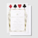 The invitation is printed on smooth, semi-translucent vellum paper, giving it an ethereal and refined look. The soft, milky texture of the paper creates a subtle sense of luxury, while allowing a faint hint of the underlying design to peek through. It features a Great Gatsby, Roaring 1920's old Hollywood Art Deco style shape, royal faux gold fleur-de-lis divider and vintage fonts, as well playing cards suits with a golden edges. Use Personalise tool to add your information. For more, visit please Vellum Casino Birthday Collection.