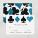 This wedding invitation reply card includes customised meal choices and features elegant typography and an accent graphic of card suits in white and turquoise blue faux glitter. Perfect for a Las Vegas wedding in a little chapel off the strip, all you need is love and a witness or two!