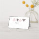 Perfect for a glamourous and glitzy Las Vegas casino wedding, this white folded place card features faux silver glitter with soft blush pink card suits, a pre-printed space to write in table numbers and a blank white space to write in your guests names. Does your caterer need to know each guest's meal choice? Edit this design to add a coloured backer unique to each meal type or use a sticker to denote who gets what type of meal. These cards are sold in packs of 25 so don't forget to order enough for each place setting!