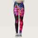Las Vegas theme based leggings design showing the Flamingo neon sparkling lights at night. Colours: pink, purple, blue and black