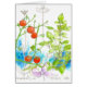 A botanical themed blank note card featuring ripe red cherry tomatoes and leafy green basil from the summer garden.