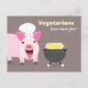 Cute pink pig is grilling up a corncob. Message says Vegetarians have more fun! but customise it to your message.