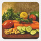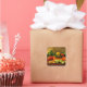 This sticker features a delectable wooden platter of fresh raw vegetables including carrots, tomatoes, peppers, cucumbers and parsley. A lemon and cashews complete the selection. This still life, set on a burlap background, is a beautiful and healthy gourmet meal as well as a colourful artistic composition of red, orange, yellow, green, tan and brown.