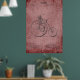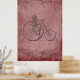 An old invention of a bicycle or velocipede patented in 1891 designed for wall art on a rustic rose vintage style background.