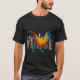 I give wanted to give this a 4 instead of a 5 because these Basic DARK T0shirts run unexpectedly SLIM or Narrow. Which is great if you do not have a potbelly, but I have a paunch. It isn't the shirt's fault that I've got a beer belly. The design and shirt itself is a quality cotton shirt. The color is more of a deep purple, but still a very pretty color. The Basic DARK T-shirts run a bit SLIMMER than the Basic Ts. The neck is a fraction narrower (or seems to be narrower) also. I'm a paunchy middle-aged woman and my neck is 12 inches (31cm) thick and the neckline fell about the same as in the photo of the man, and I had the desire to tug it a bit. So if you're a thick necked man or like loose shirts, be aware these are slimmer shirts. Once I get rid of my lockdown paunch it'll look great. The shirt washed well in cold water with no apparent bleeding. We don't have a dryer, so it hung dry. Did not shrink. Love the colors and the design. The design looks smaller on my shirt than it does on the model on-line. But still, it looks good on the shirt. The printing looks as it does on the model, just the size seems fractionally smaller. Washed garment in cold water, hung dry and design appeared unaffected.