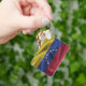 Keychain with the flag of Venezuela in wavy fabric style design. This design features the Venezuelan flag colours and design with a beautiful waving material textured effect. This flag design is a great way to show you are proud to be from Venezuela.