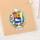 Venezuela National Coat Of Arms Patriotic Sticker with the depiction of the Venezuela Coat of Arms. Below the coat of arms is the inscription "Venezuela" done in beautiful "Aceserif" font and the black colour. Inscription is on the bottom infused with the coat of arms but it can be freely moved or even deleted if you wish for a bit different design. Venezuela coat of arms sticker is a fantastic gift and interesting present for any occasion. © 2021 CoutriesOfTheWorld