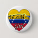 Leuke Button met een hart afgebeeld met de Venezolaanse vlag erop. Op de tekst staat: Venezuelan girl De achtergrond is in de kleur wit. Leuk om te geven als cadeau of voor jezelf om te laten zien dat je trots bent om Venezolaans te zijn. kleuren: wit, blauw, geel en rood.