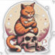 Grumpy orange cat on the skulls of his enemies with the moon and stars.