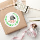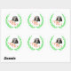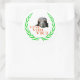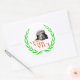 Ancient Roman military helmet made of copper metal. Text Veni, Vidi, Vici. Drawing of a green laurel wreath around. Square format, gifts and souvenirs. Round Sticker