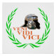 Ancient Roman military helmet made of copper metal. Text Veni, Vidi, Vici. Drawing of a green laurel wreath around. Wallart, prints and posters
