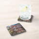A close up photograph of a carnival mask on a market stall in Venice in Italy printed on a set of souvenir coasters.
