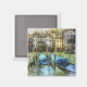 Beautiful Venice Gondola scene featuring two bright blue boats, with the canals and buildings in the background. Makes you want to hop onboard and take a ride down the Grand Canal.