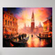 This captivating painting portrays Venice at sunset with intense, warm colours reflecting off the Grand Canal. The gondolas, historic architecture, and San Marco’s iconic tower create a stunning Italian landscape. The bold artistic style brings out the romance and mystery of Venice, making it a perfect statement piece for any space.