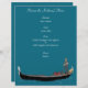 Create a custom menu for your dinner or special event with an Italian theme. This single sheet menu flyer is ready to be personalised with your own list of dishes and features an illustration of a gondolier and gondola set against a teal blue background making it perfect for Italian themed meals.