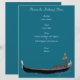 Create a custom menu for your dinner or special event with an Italian theme. This single sheet menu flyer is ready to be personalised with your own list of dishes and features an illustration of a gondolier and gondola set against a teal blue background making it perfect for Italian themed meals.