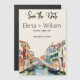 In elegant script font, the words "Save the Date" adorn the top of the card, their graceful curves mirroring the flowing canals of Venice. Below, the names of the bride and groom are delicately intertwined, written with a sense of tenderness and love. Beneath their names, the wedding date is displayed with subtle sophistication, marking the momentous occasion that awaits.