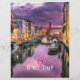 A flyer with a beautiful scenic landscape photo of a canal in Venice, Italy. With dark purple clouds, looks like a storm is coming. Great capture of the unique venetian architecture and watery reflections. Customisable text says: Venice, Italy with a little heart above the words.