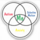 A Venn diagram for people with multiple diagnoses showing three overlapping circles labelled "autism", "selective mutism", and "anxiety", with "me" in the middle. Can be customised for another diagnosis, personal identity, or person.