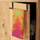 This awesome kitchen towel features a fractal image that is reminiscent of a thunderstorm on Venus. It has a bright orange background with bright yellow lines coming out from the centre that look like burning bolts of lightning. In the centre of each lightning bolt there is a blue line that reminded me of a vein resulting in the title Venous Thunderstorm.