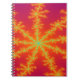 This awesome notebook.features a fractal image that is reminiscent of a thunderstorm on Venus. It has a bright orange background with bright yellow lines coming out from the centre that look like burning bolts of lightning. In the centre of each lightning bolt there is a blue line that reminded me of a vein resulting in the title Venous Thunderstorm.