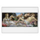 Venus and Mars by Sandro Botticelli, 1483, is a large tempera painting on wood panel depicting the classical gods of Love and War. Venus, the goddess of Love, gazes on the slumbering Mars, the mythological god of War, while a group of mischievous baby satyrs steal away Mars’ helmet, lance and weapons of war. The scene is set in a colourful forest landscape. In the distance is the sea from which Venus was born.