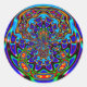 Digital artwork in a spherical pattern with a rainbow of bright colours.