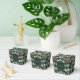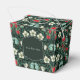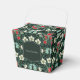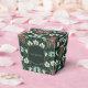 A petite Victorian Gothic takeout favour box featuring an ornate dark green print of a Venus flytrap and ethereal blue butterfly. Ideal for wedding favours, gothic parties, or sample-sized treats, this elegant box is perfect for holding candies, chocolates, or small promotional giveaways. The customisable text template makes it easy to personalise for themed events or business branding.