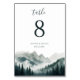 Guide your guests to their seats with the atmospheric beauty of the Verdant Peaks | Watercolor Table Number. This elegant card features a hand-painted landscape of misty evergreen forests and towering mountain summits, perfectly capturing the spirit of the wilderness.