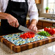 This arresting design pays homage to the cherished tradition of Azulejo craftsmanship, an art form deeply ingrained in the cultural tapestry of Portugal and Spain. Each precisely placed tile-like motif reflects the expertise of artisans who have preserved their craft through generations. This cutting board is more than a utilitarian item; it is a functional piece of art, narrating stories of culture, faith, and everyday life in vibrant Mediterranean cultures.